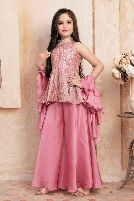 Girls Floral Printed Top & Embroidered Palazzo Set