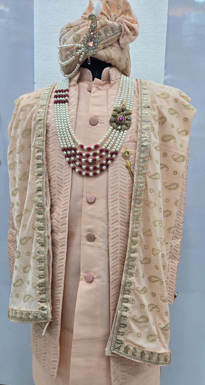 Sherwani Set With Pagri, Dupatta & Mala